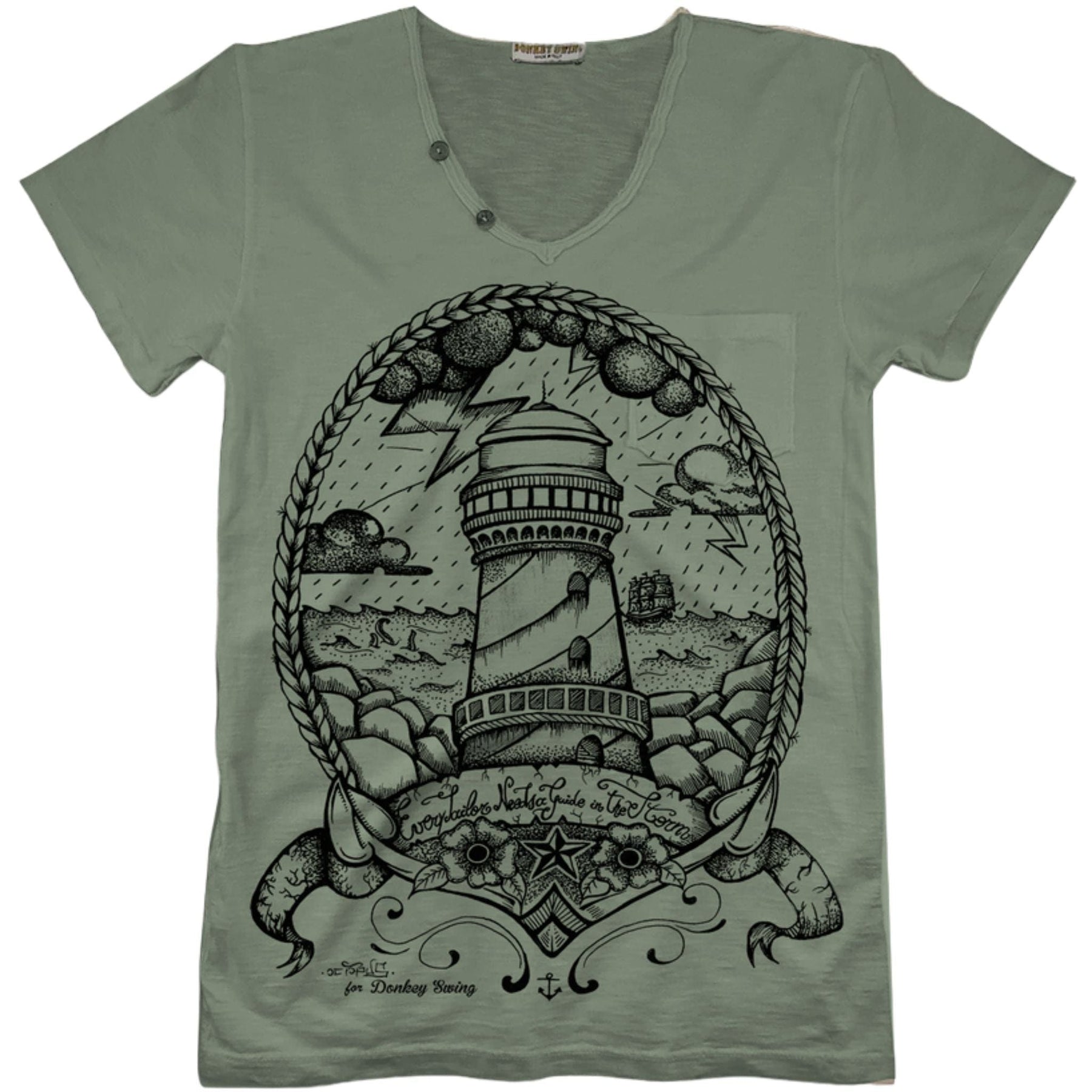 Vintabros T-shirt S / Green Vintabros Lighthouse in the Storm Men V-neck T-shirt Brand