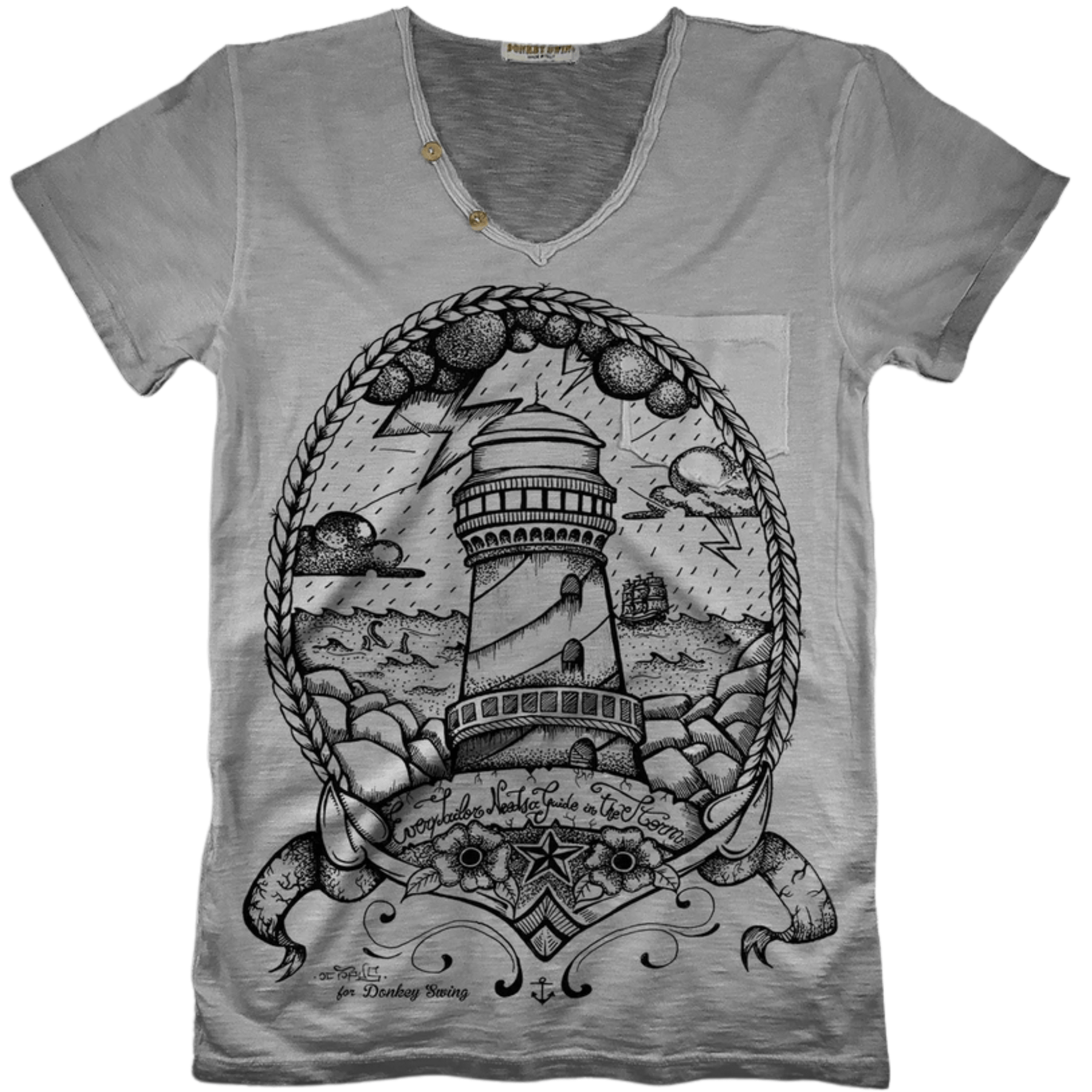 Vintabros T-shirt S / Grey Vintabros Lighthouse in the Storm Men V-neck T-shirt Brand