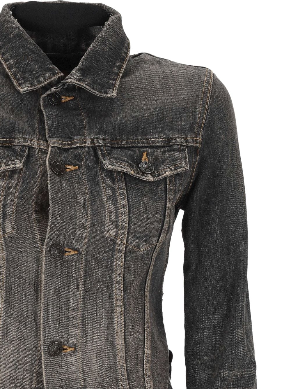 Cotton denim, fully laced up at the back, 5 buttons at the front, 2 buttoned pockets at the chest, 2 slash pockets and jeans buttons and jeans eyelets with Balenciaga engraving. lace up Lace-up denim jacket.