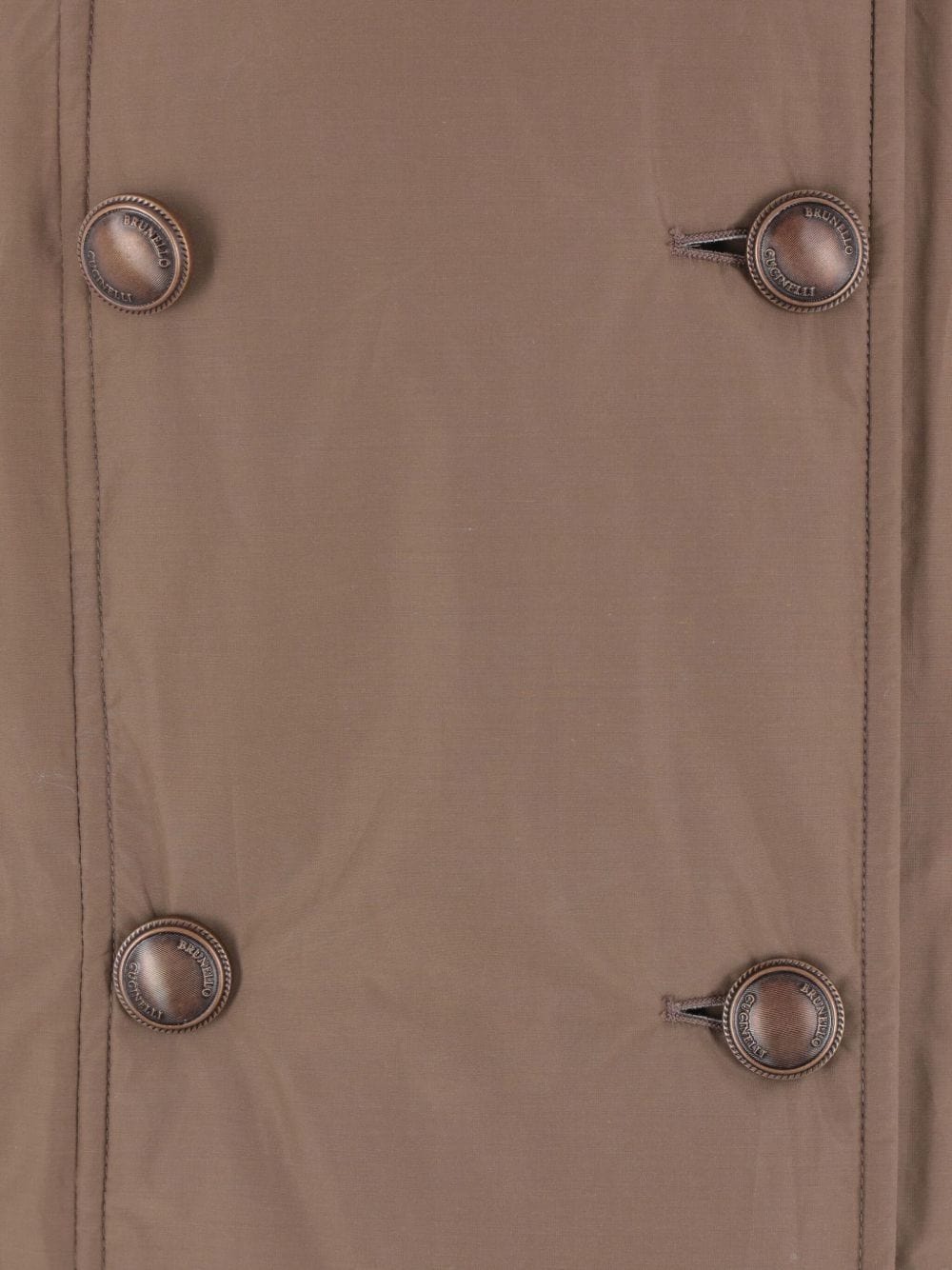 brown double-breasted fastening button embellishments high collar raglan sleeves cuffed sleeves Short down jacket