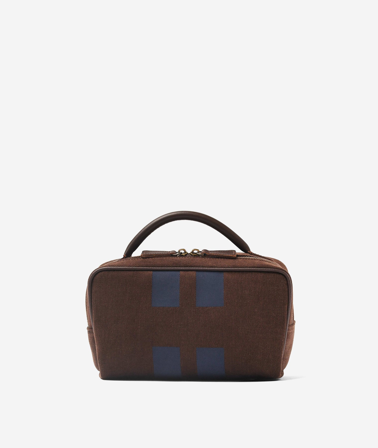 Compact but roomy, customizable with your initials, the College beauty case in chocolate suede and blue details is the ™perfect ally for any adventure.