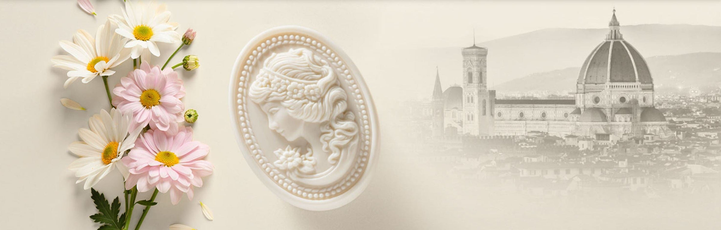 義大利肥皂展示,有 12 塊獨立包裝的橢圓形肥皂,各種香味: